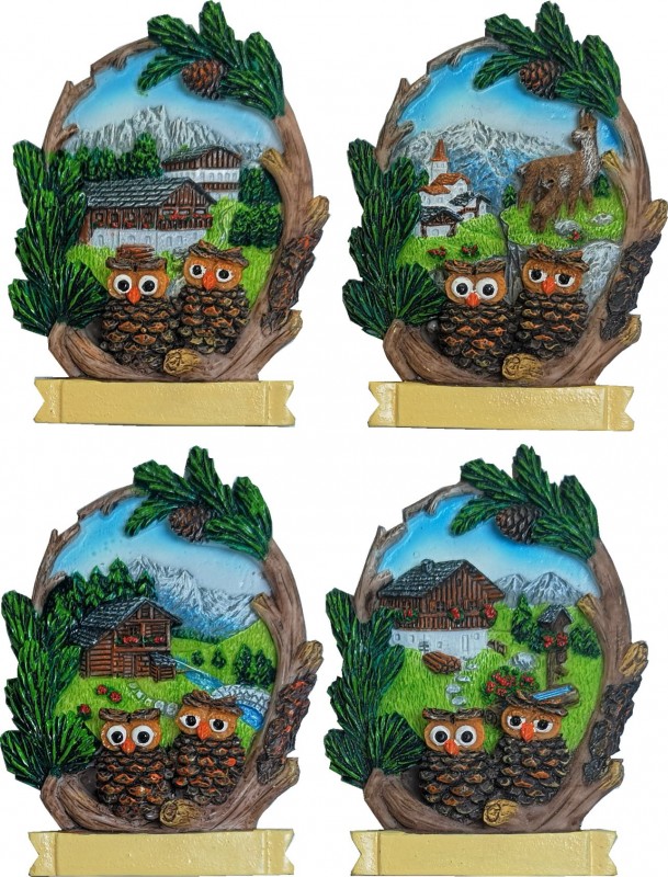 Sommermagnete COD: M.12272 Sommermagnet EULE MIT BILD, 4 sort., cm 5,5x7 H Mindestverpackung von 24 St..