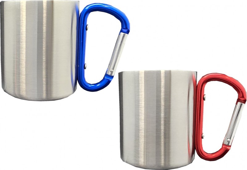 Bottiglie e thermos COD: M.1416A Tazza in acciaio inox con moschettone, ml 220 Confezione minima da 10 pz..